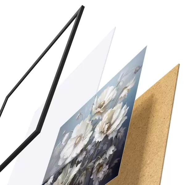 Plakat Valge kimp pojengid sinisel taustal maalimisstiilis f43370