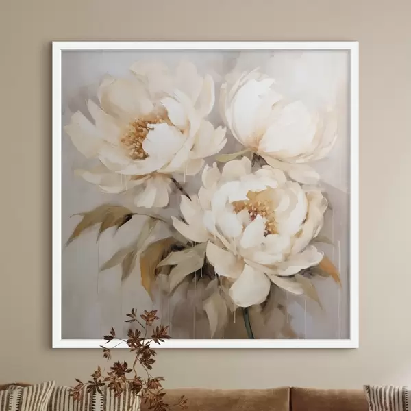 Poster Õrnad pojengid neutraalsetes toonides abstraktses maalimisstiilis Nr f43387