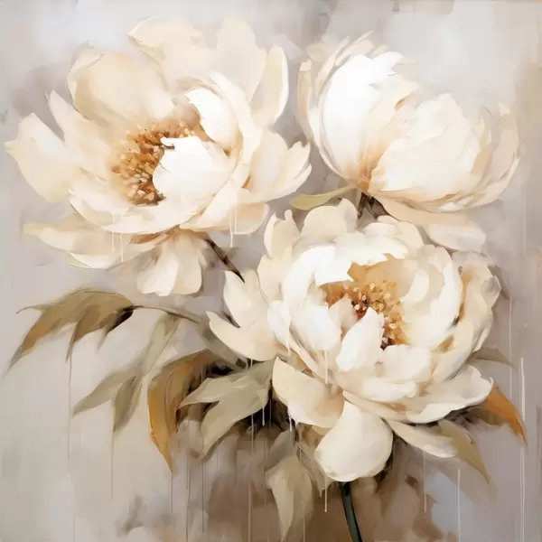 Poster Õrnad pojengid neutraalsetes toonides abstraktses maalimisstiilis Nr f43387