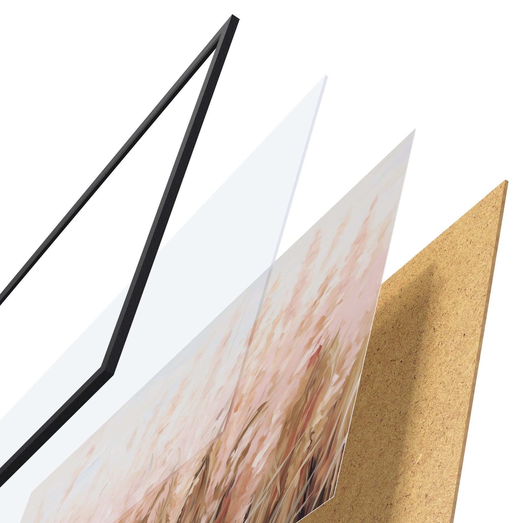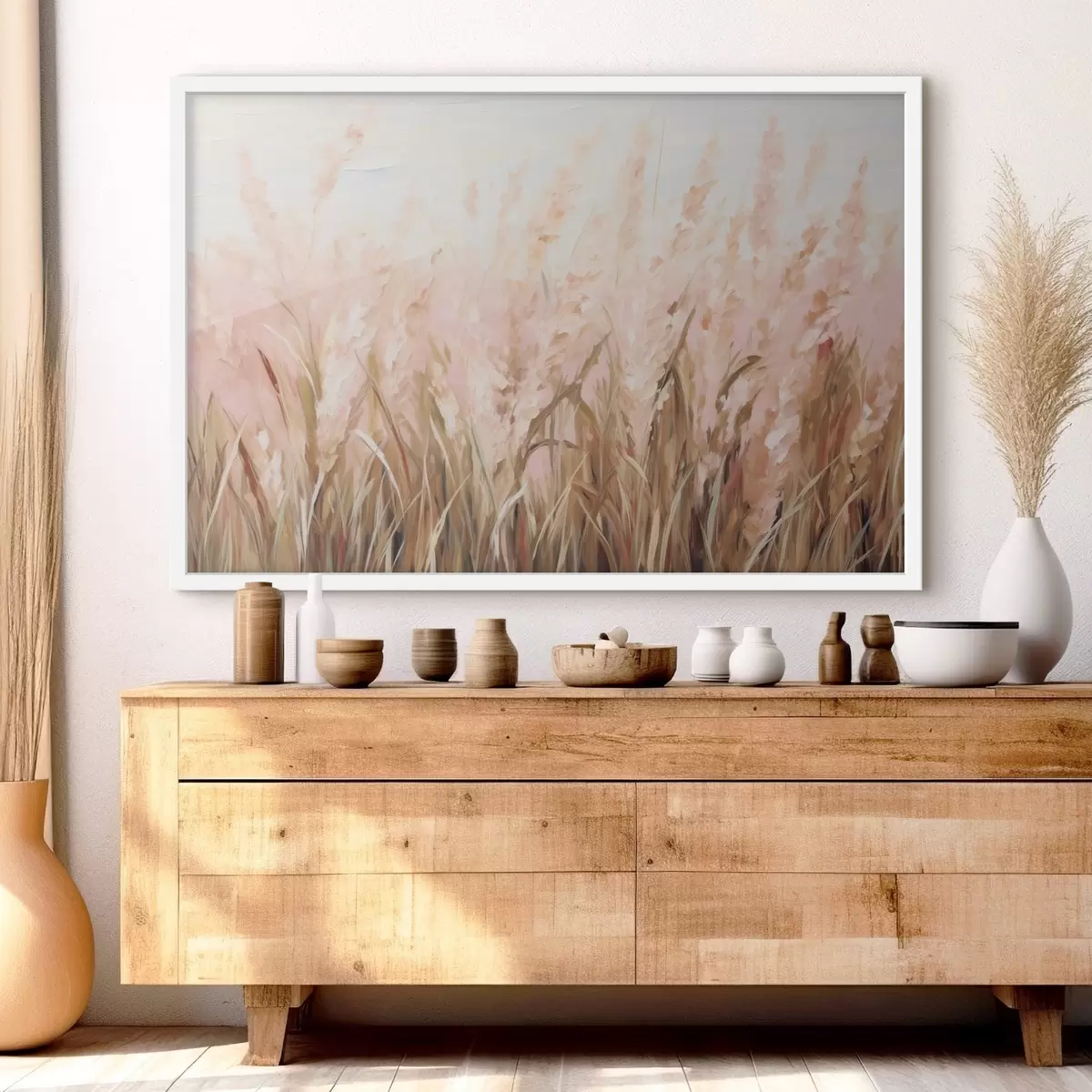 Plakat Pampas roosa ja pruunide toonidega rohuvälja, pehmed pintslitõmbed, abstraktne õlimaali kunstimitatsioon f43403