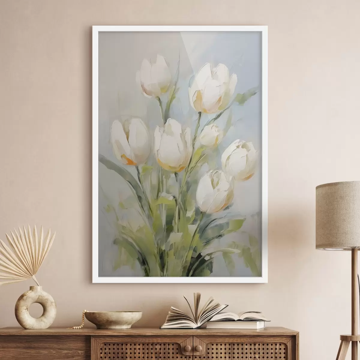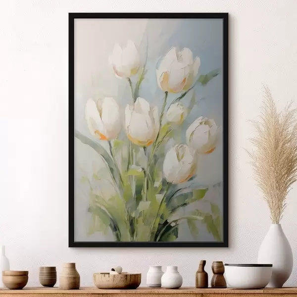 Plakat Valged tulbid imitatsioonimaali f43435