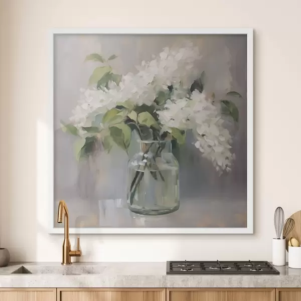 Plakat Valge lilla vaasis imitatsiooni maalimine f43439