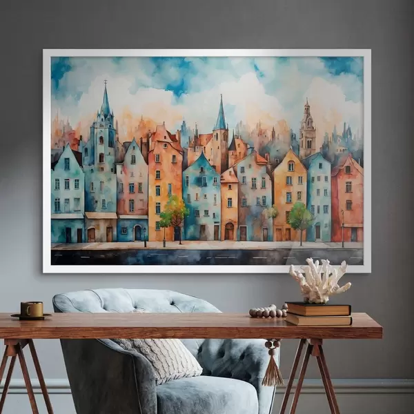 Plakat Euroopa linna stiilis akvarellmaal f43441