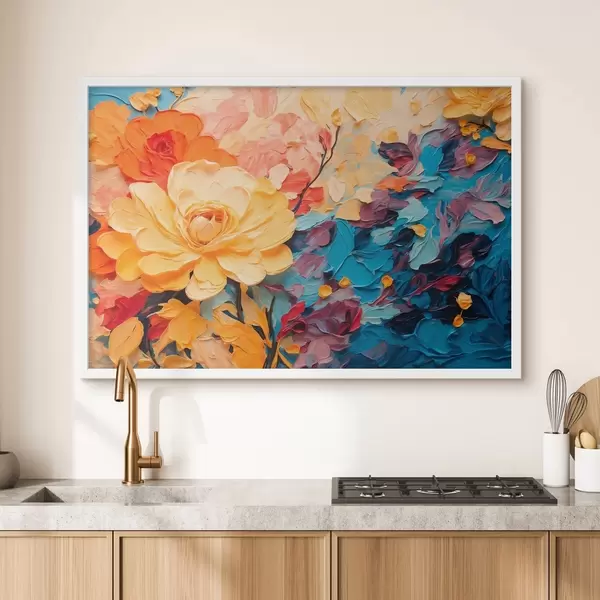 Poster Lilled abstraktsel taustal õlimaali stiilis Nr f43442