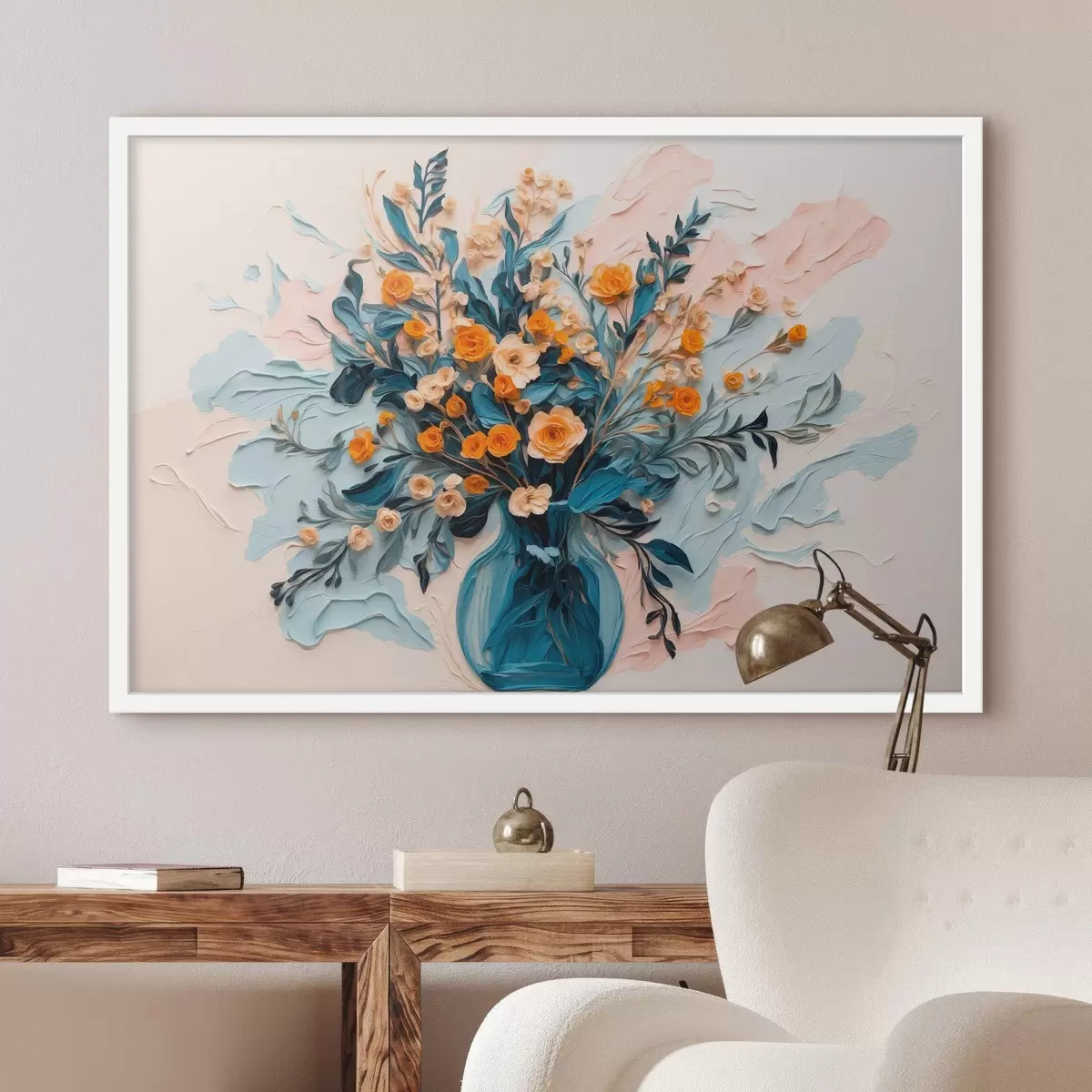 Plakat Lilled läbipaistvas vaasis õlimaali stiilis f43443