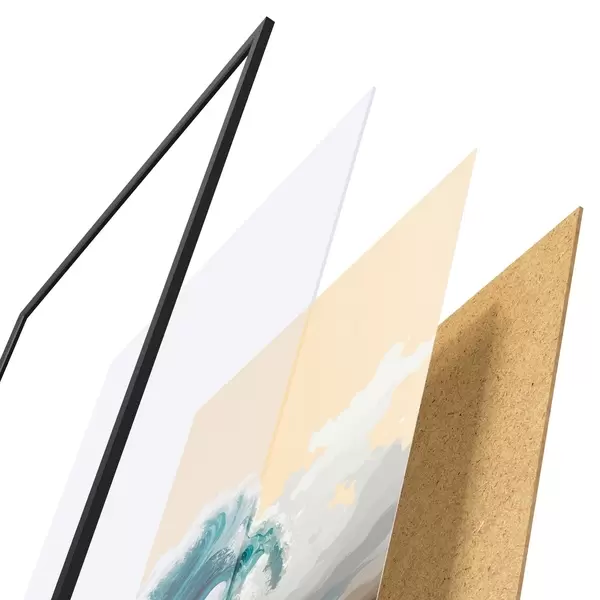 Plakat koosneb raamist, pleksiklaasist, trükitud pildist ja puitlaastplaadist alusplaadist. Tänu tagaküljel olevatele kinnitustele saab plakati kohe seinale riputada.