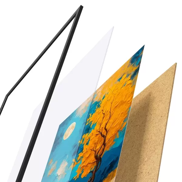 Plakat koosneb raamist, pleksiklaasist, trükitud pildist ja puitlaastplaadist alusplaadist. Tänu tagaküljel olevatele kinnitustele saab plakati kohe seinale riputada.