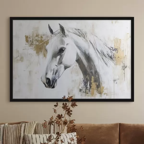 Plakat Valge hobune, õlistiilis joonistus, loomad, erksad pintslitõmbed f43497