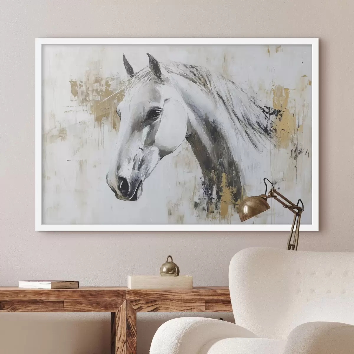 Poster Valge hobune, õlistiilis joonistus, loomad, erksad pintslitõmbed Nr f43497