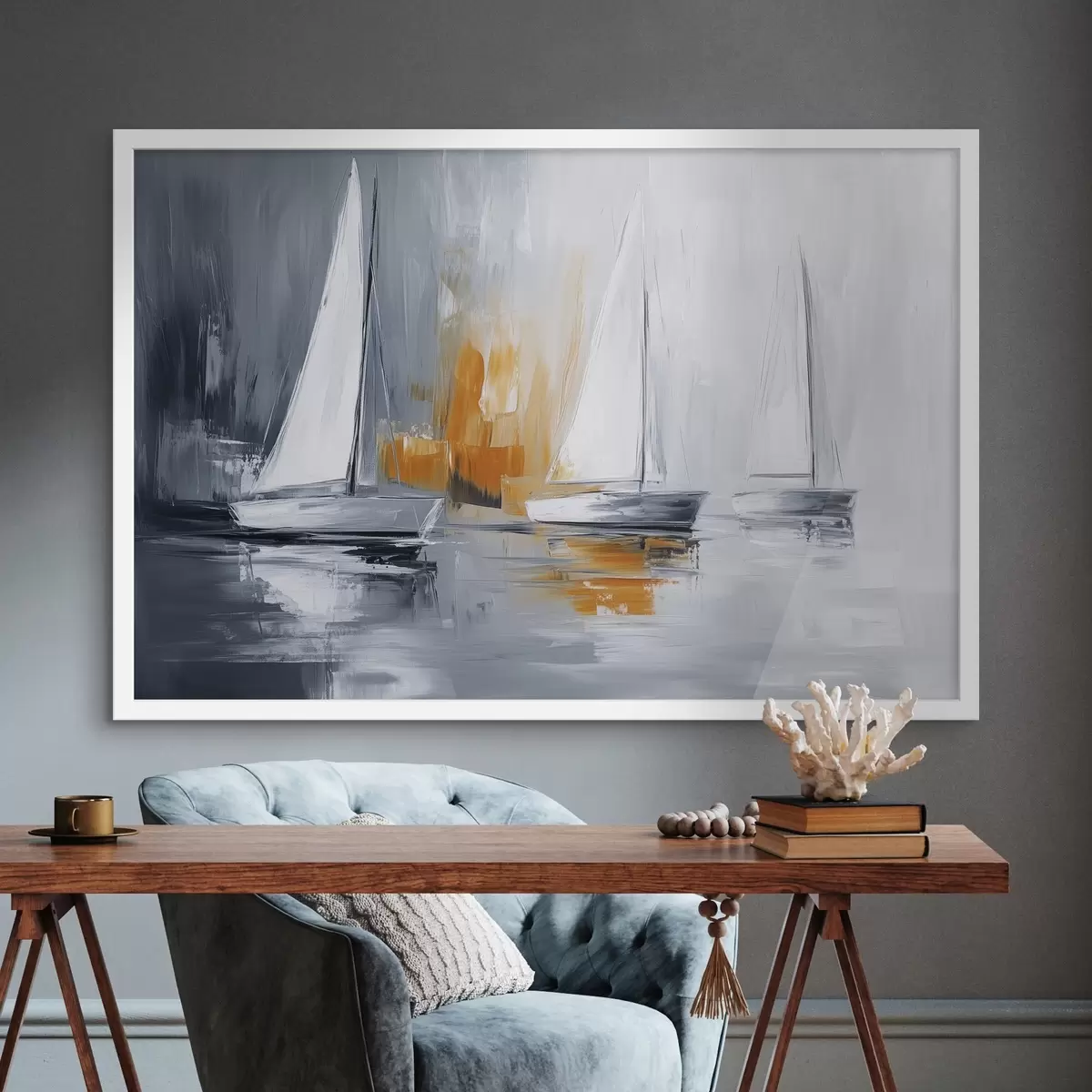 Plakat Purjekad, abstraktsioon, akrüülstiilis joonistus, hall ja oranž f43499