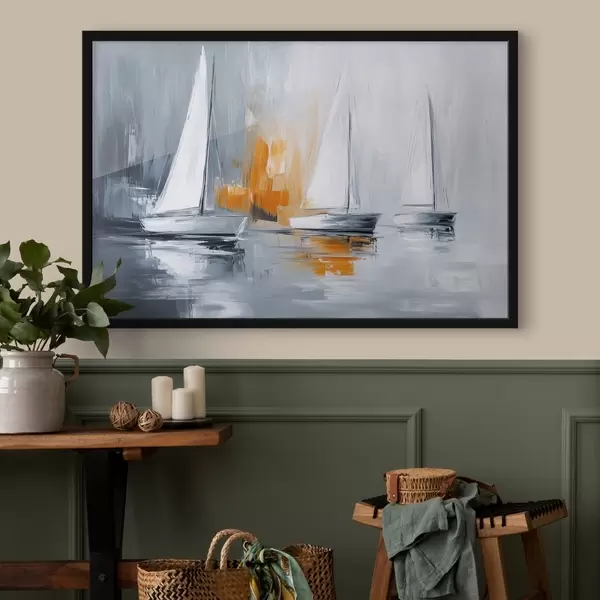 Plakat Purjekad, abstraktsioon, akrüülstiilis joonistus, hall ja oranž f43499