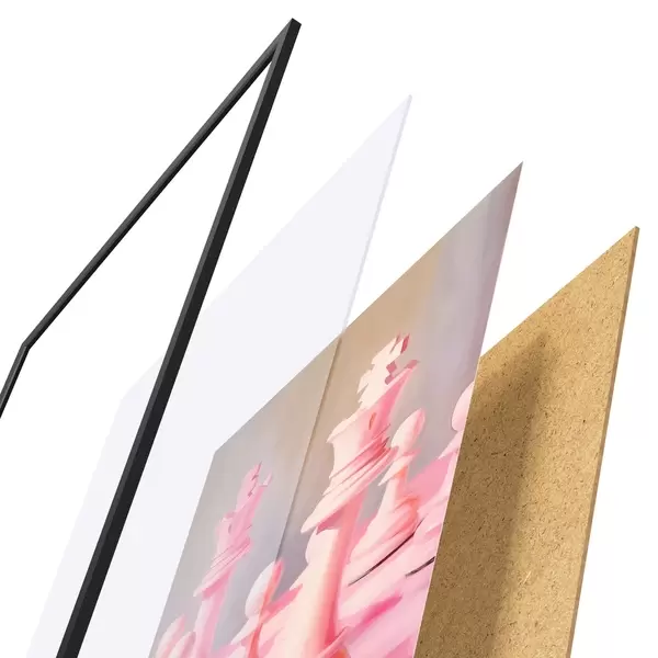 Plakat koosneb raamist, pleksiklaasist, trükitud pildist ja puitlaastplaadist alusplaadist. Tänu tagaküljel olevatele kinnitustele saab plakati kohe seinale riputada.
