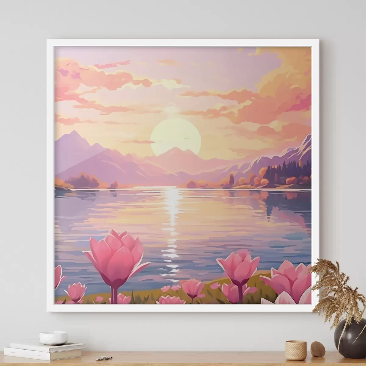 Poster Maastik koos tiigiga mägede taustal Nr f43523