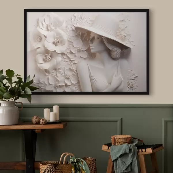 Poster Imiteeritud reljeef, mis kujutab kübaraga naist Nr f43547