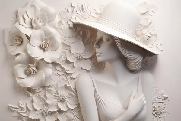 Poster Imiteeritud reljeef, mis kujutab kübaraga naist Nr f43547