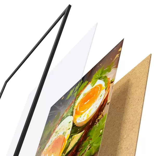 Plakat koosneb raamist, pleksiklaasist, trükitud pildist ja puitlaastplaadist alusplaadist. Tänu tagaküljel olevatele kinnitustele saab plakati kohe seinale riputada.