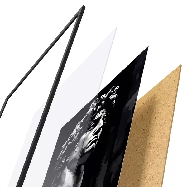 Plakat koosneb raamist, pleksiklaasist, trükitud pildist ja puitlaastplaadist alusplaadist. Tänu tagaküljel olevatele kinnitustele saab plakati kohe seinale riputada.