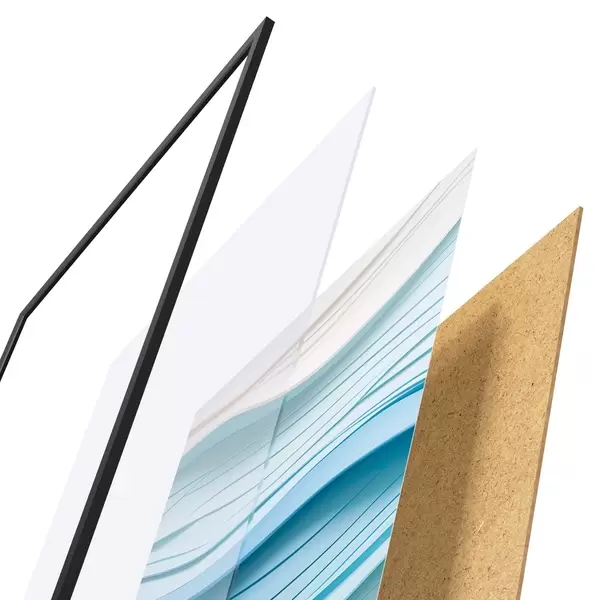 Plakat koosneb raamist, pleksiklaasist, trükitud pildist ja puitlaastplaadist alusplaadist. Tänu tagaküljel olevatele kinnitustele saab plakati kohe seinale riputada.