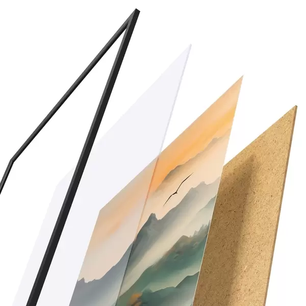 Plakat koosneb raamist, pleksiklaasist, trükitud pildist ja puitlaastplaadist alusplaadist. Tänu tagaküljel olevatele kinnitustele saab plakati kohe seinale riputada.