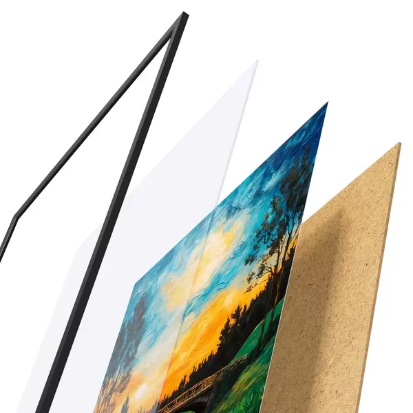 Plakat koosneb raamist, pleksiklaasist, trükitud pildist ja puitlaastplaadist alusplaadist. Tänu tagaküljel olevatele kinnitustele saab plakati kohe seinale riputada.