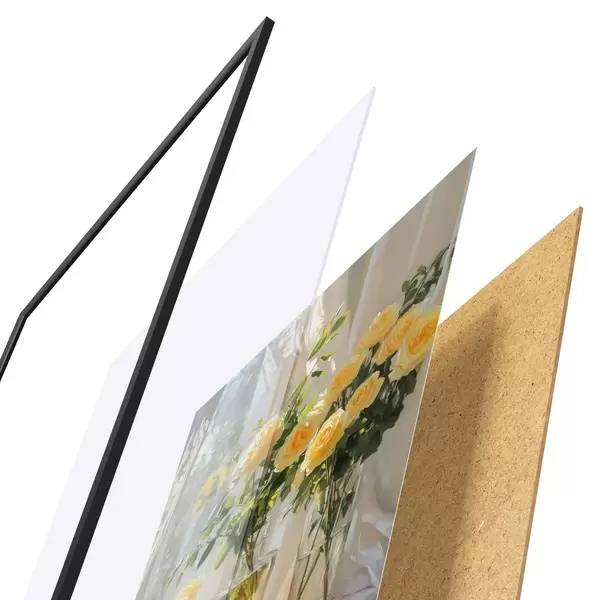 Plakat koosneb raamist, pleksiklaasist, trükitud pildist ja puitlaastplaadist alusplaadist. Tänu tagaküljel olevatele kinnitustele saab plakati kohe seinale riputada.