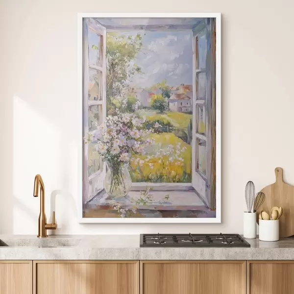 Poster Suvi külas, maaliline, õlistiilis joonistus, lilled vaasis Nr f43889