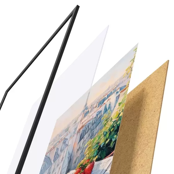 Plakat koosneb raamist, pleksiklaasist, trükitud pildist ja puitlaastplaadist alusplaadist. Tänu tagaküljel olevatele kinnitustele saab plakati kohe seinale riputada.