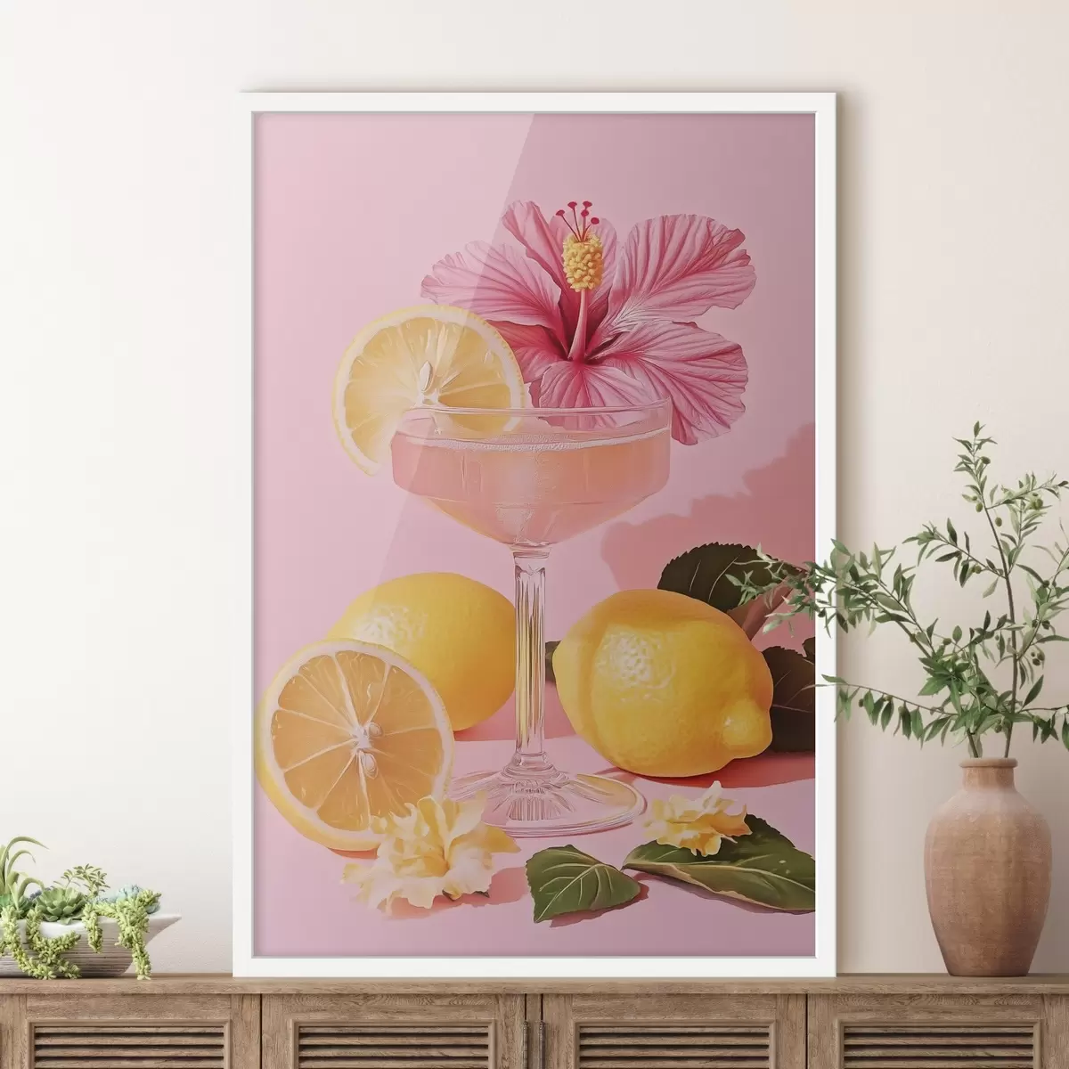 Plakat Roosa kokteil hibiskuslillega, sidrunitega, realismiga f43893
