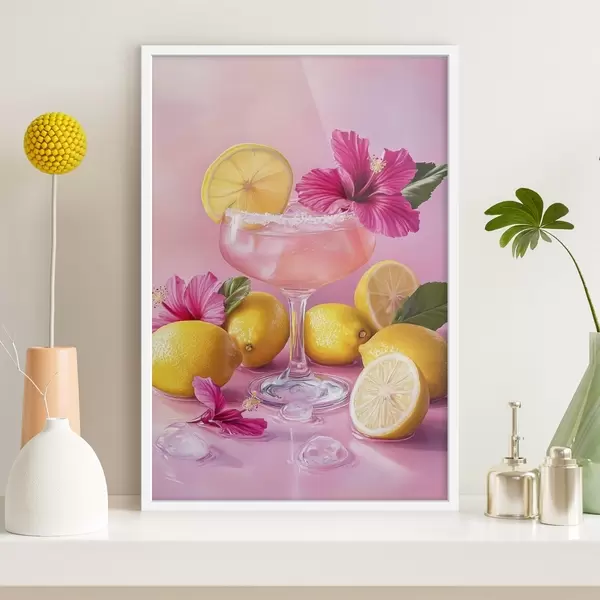 Plakat Suvekokteil lillede ja sidrunitega, roosad värvid, akvarellistiil f43895