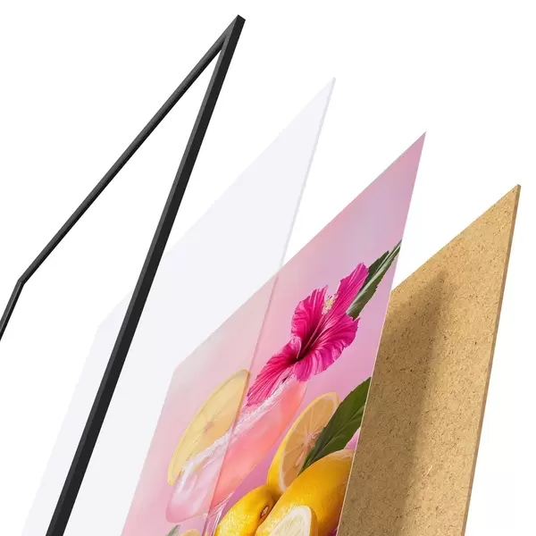 Plakat koosneb raamist, pleksiklaasist, trükitud pildist ja puitlaastplaadist alusplaadist. Tänu tagaküljel olevatele kinnitustele saab plakati kohe seinale riputada.