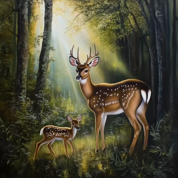 Plakat Hirv ja hirvepoeg metsas f43915