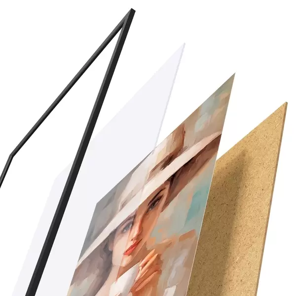 Plakat koosneb raamist, pleksiklaasist, trükitud pildist ja puitlaastplaadist alusplaadist. Tänu tagaküljel olevatele kinnitustele saab plakati kohe seinale riputada.
