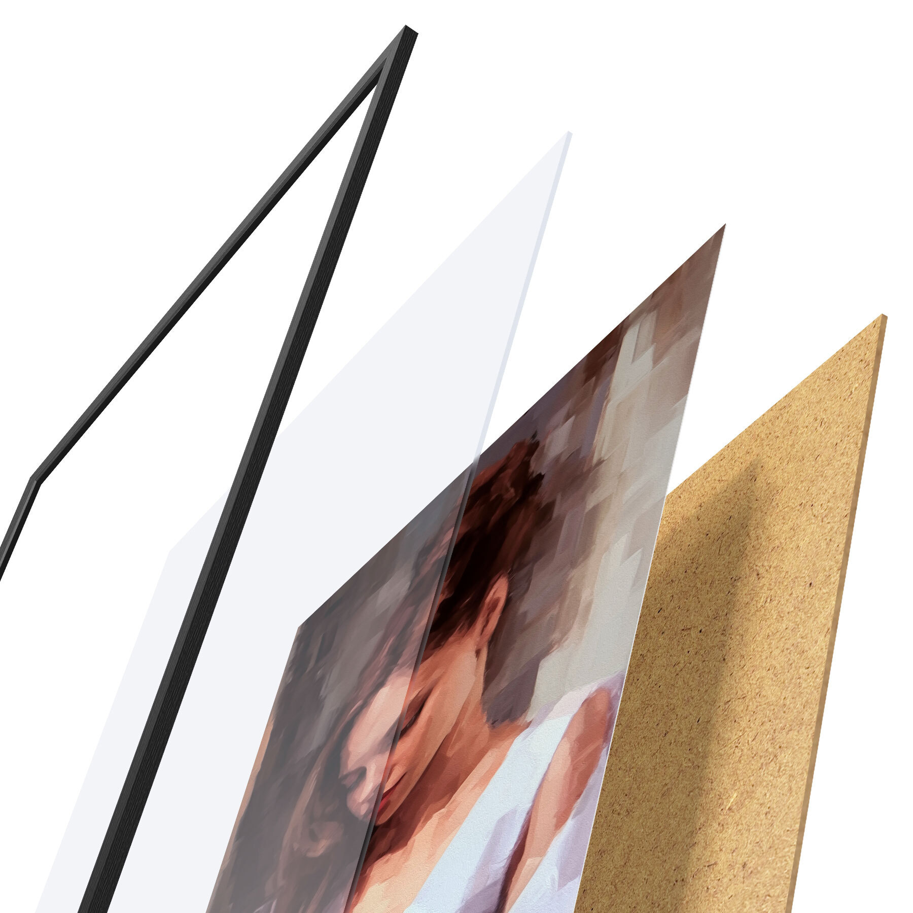 Plakat koosneb raamist, pleksiklaasist, trükitud pildist ja puitlaastplaadist alusplaadist. Tänu tagaküljel olevatele kinnitustele saab plakati kohe seinale riputada.