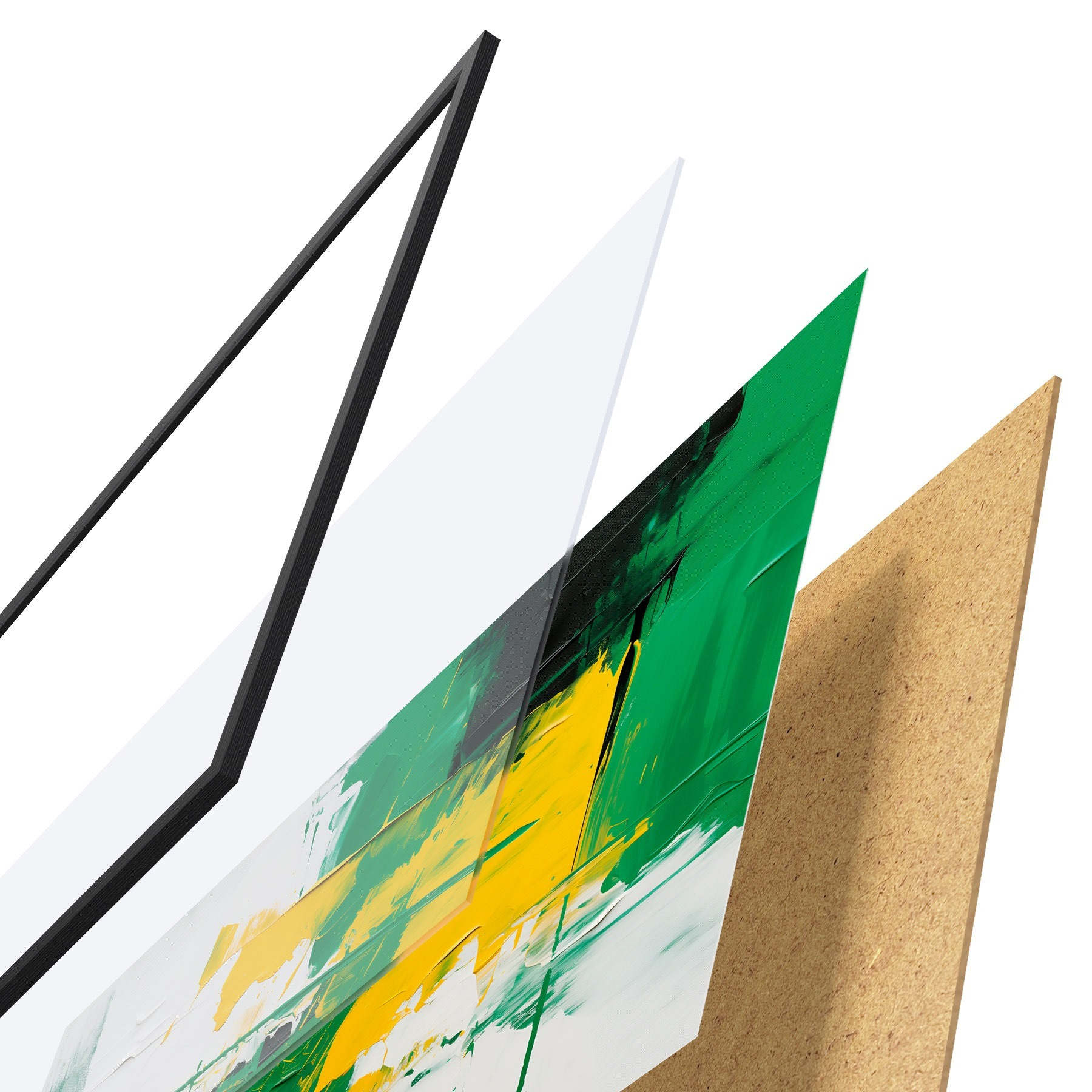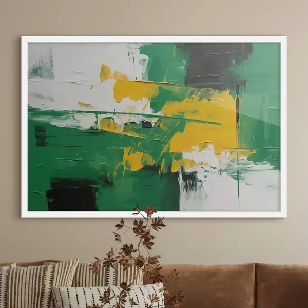 Plakat Abstraktne õlimaal valge, rohelise ja kollase värviga õlimaali stiilis f43944
