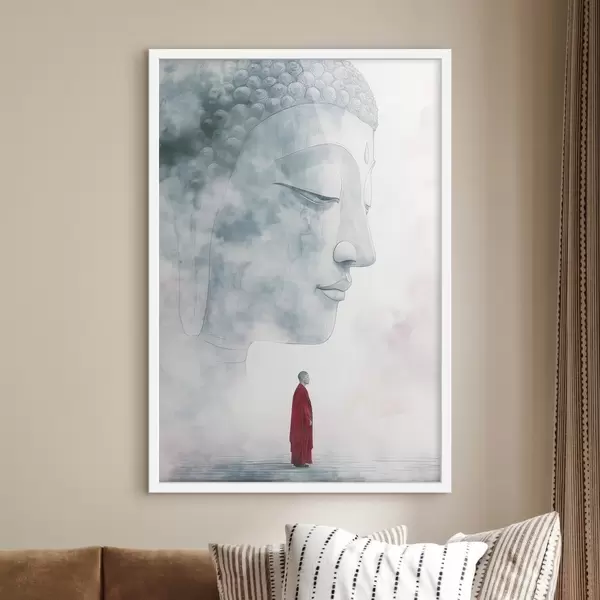 Poster Budistlik munk punases rüüs, Buddha siluett, akvarellstiilis Nr f44006