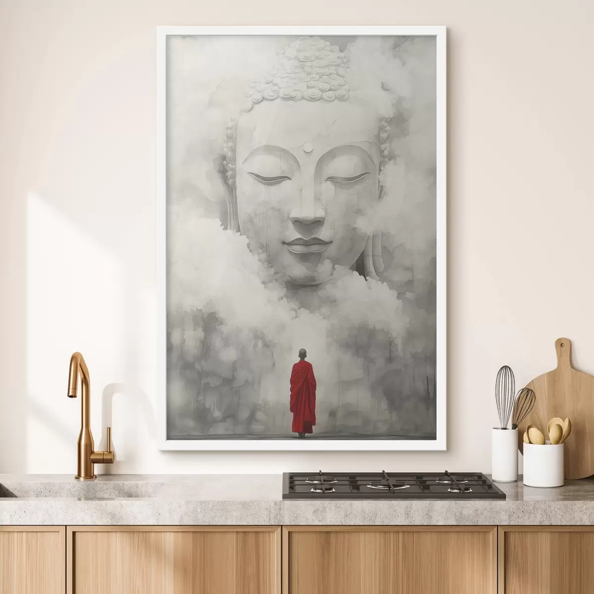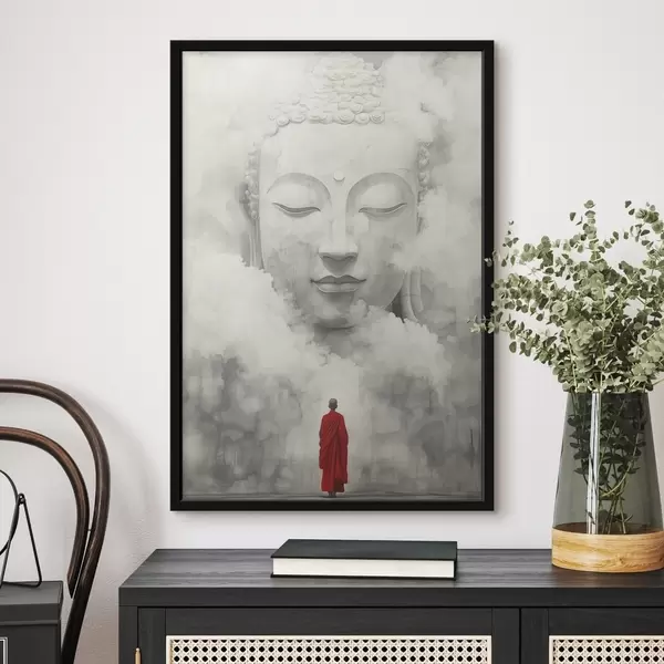 Poster Budism, munk punases rüüs, udu, akvarellstiil Nr f44007