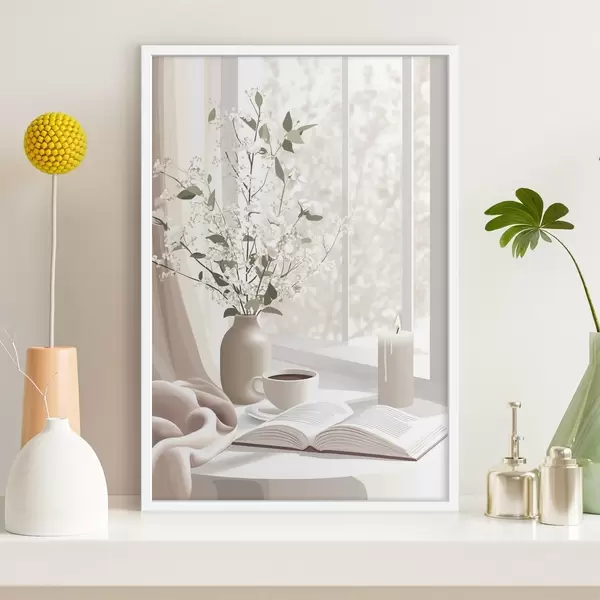 Poster Kevadine hommik kohvi ja lilledega, pehmed pastelsed värvid Nr f44015