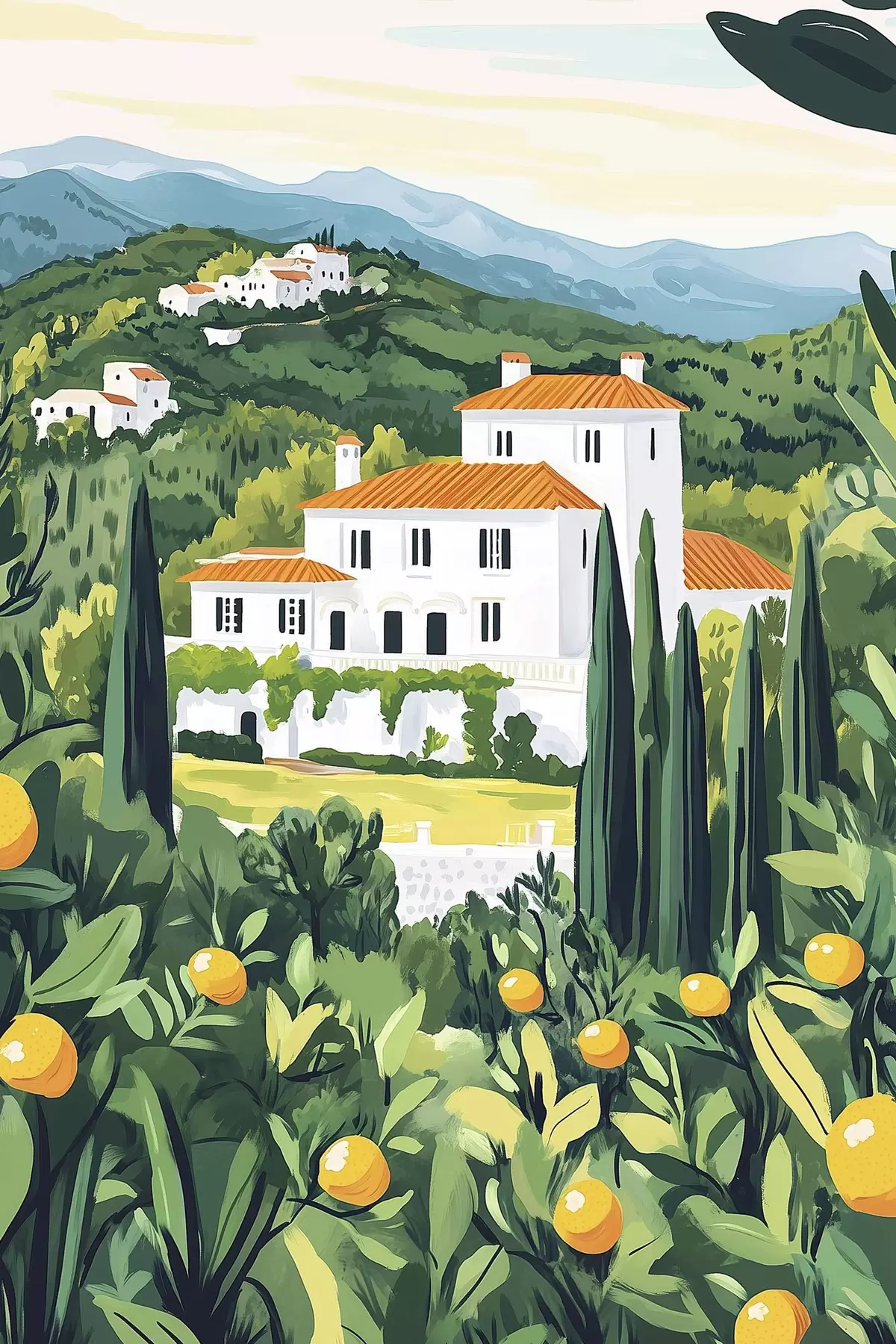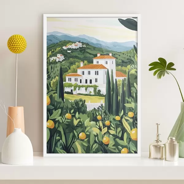 Plakat Suvine loodus, Vahemere, sidrunipuud, arhitektuuriline f44028