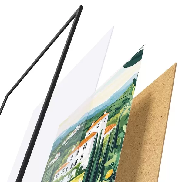 Plakat koosneb raamist, pleksiklaasist, trükitud pildist ja puitlaastplaadist alusplaadist. Tänu tagaküljel olevatele kinnitustele saab plakati kohe seinale riputada.