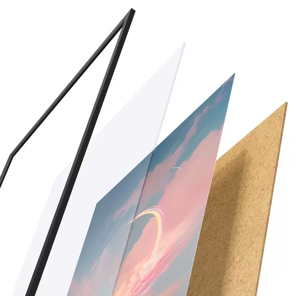 Plakat koosneb raamist, pleksiklaasist, trükitud pildist ja puitlaastplaadist alusplaadist. Tänu tagaküljel olevatele kinnitustele saab plakati kohe seinale riputada.