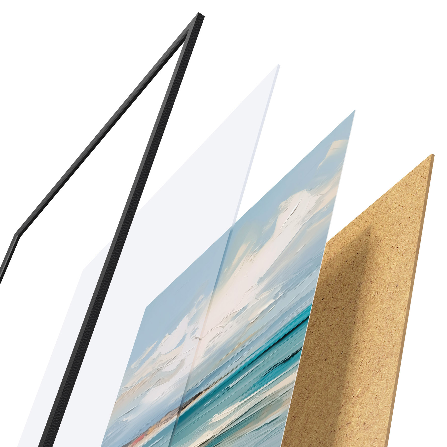 Plakat koosneb raamist, pleksiklaasist, trükitud pildist ja puitlaastplaadist alusplaadist. Tänu tagaküljel olevatele kinnitustele saab plakati kohe seinale riputada.