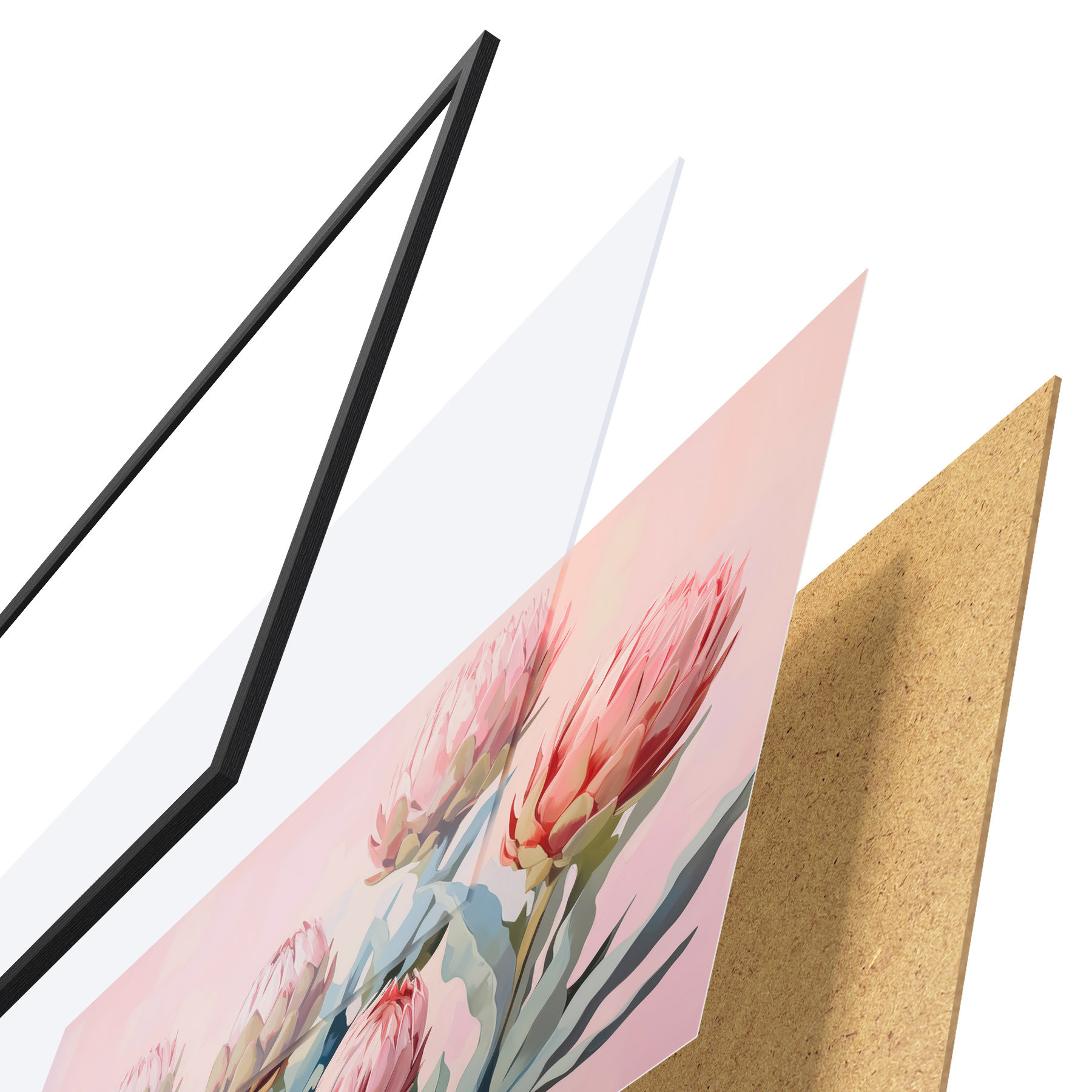 Plakat koosneb raamist, pleksiklaasist, trükitud pildist ja puitlaastplaadist alusplaadist. Tänu tagaküljel olevatele kinnitustele saab plakati kohe seinale riputada.