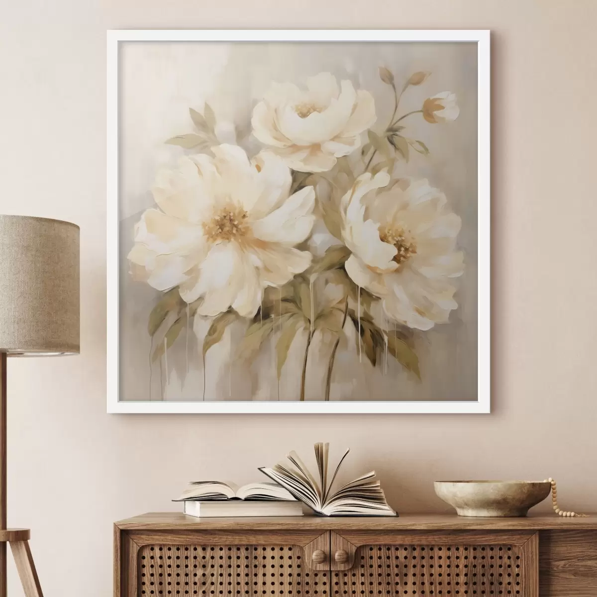 Plakat Valge kroonlehtedega lilleline kooslus f44043