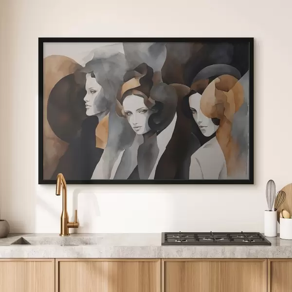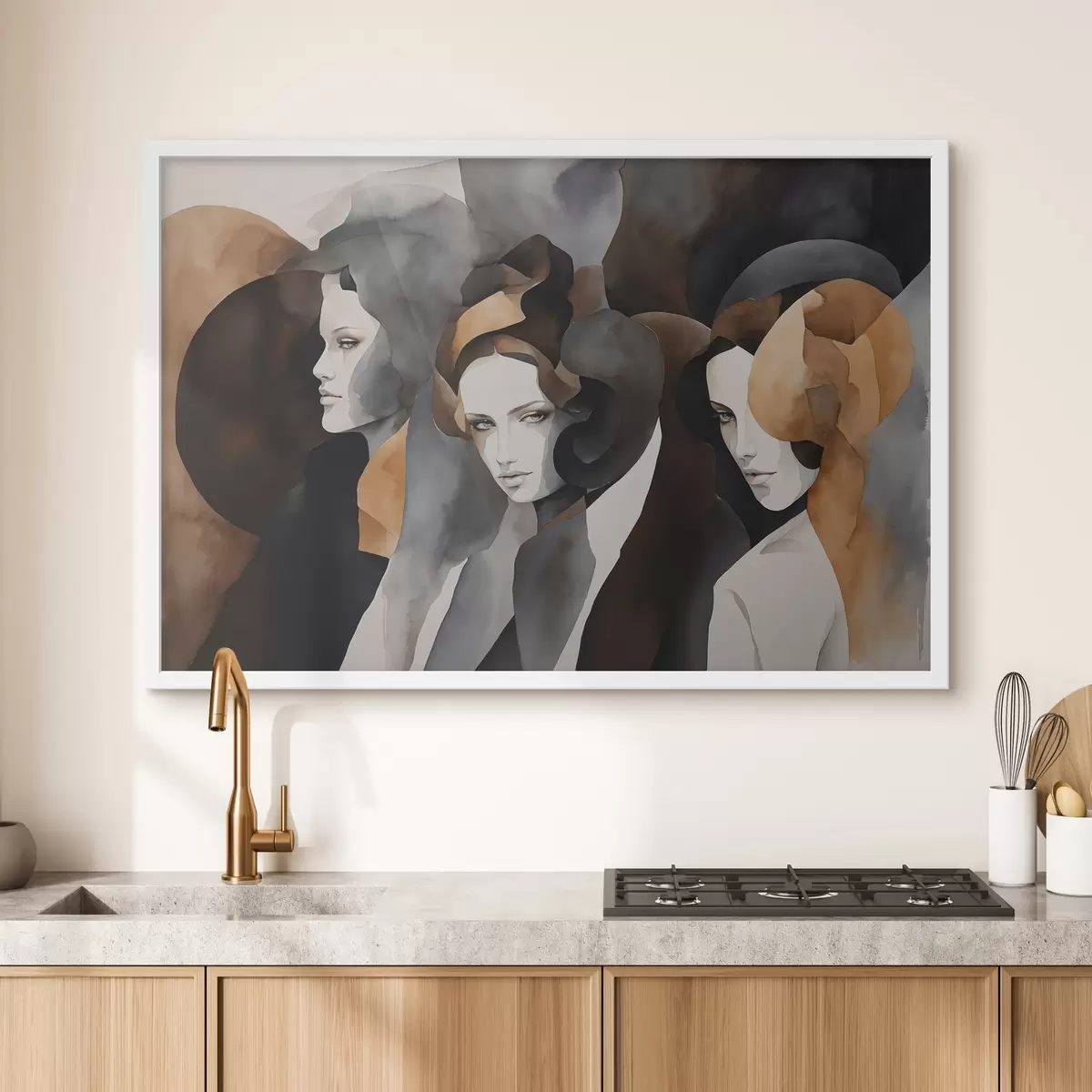 Poster Abstraktne maalimine naiste nägudega Nr f44060