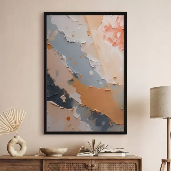 Poster Abstraktne maal valge, kollase ja sinise värviga Nr f44064