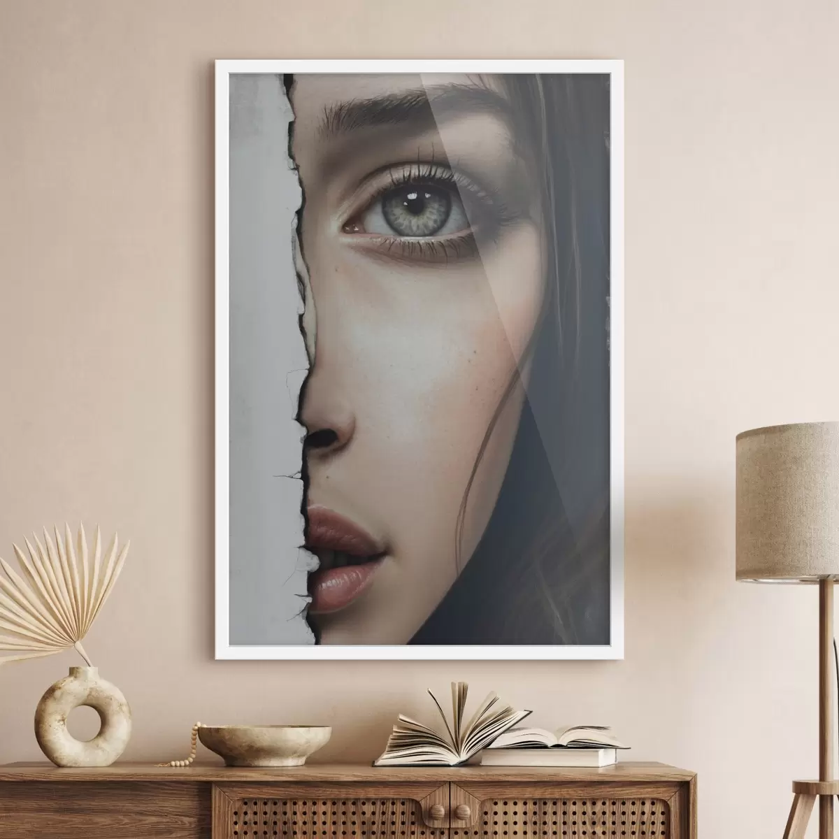 Plakat Tüdruku nägu valge seina taga f44083