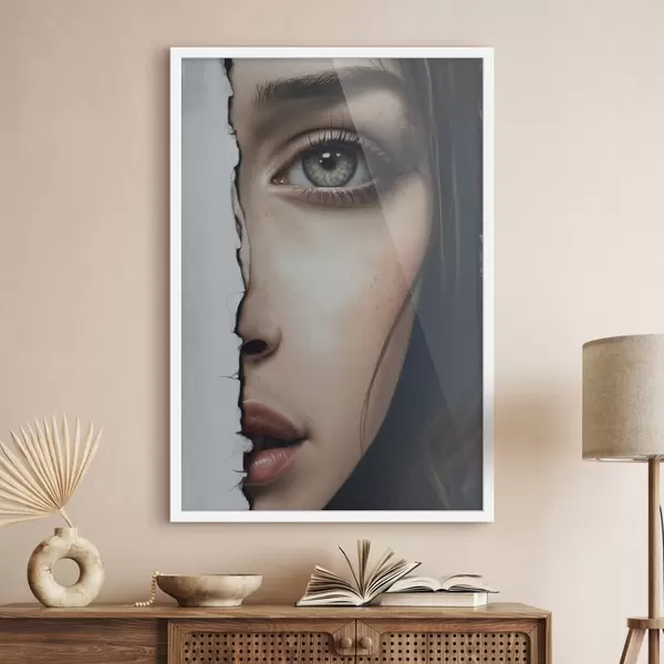Poster Tüdruku nägu valge seina taga Nr f44083