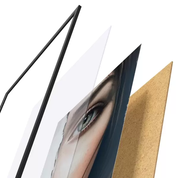 Plakat koosneb raamist, pleksiklaasist, trükitud pildist ja puitlaastplaadist alusplaadist. Tänu tagaküljel olevatele kinnitustele saab plakati kohe seinale riputada.