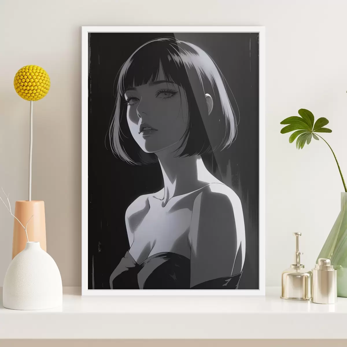 Plakat Plakat tüdrukuga mustal taustal f44103