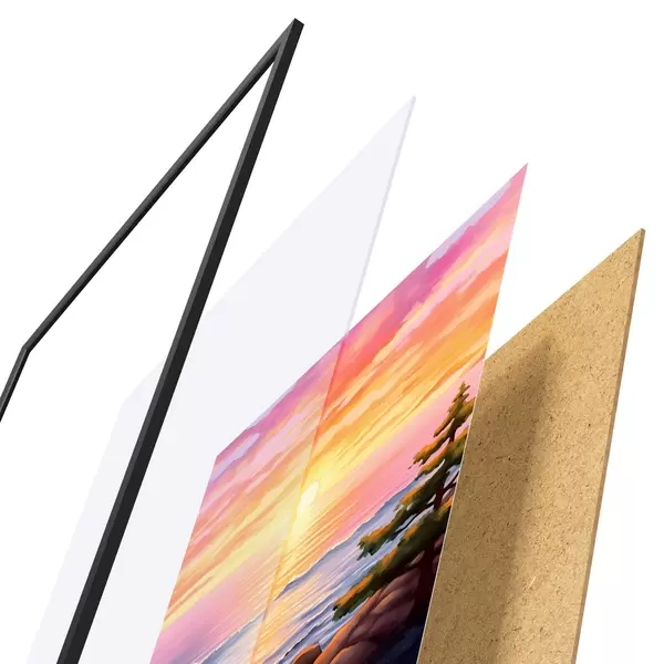 Plakat koosneb raamist, pleksiklaasist, trükitud pildist ja puitlaastplaadist alusplaadist. Tänu tagaküljel olevatele kinnitustele saab plakati kohe seinale riputada.